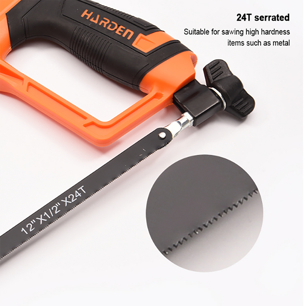 610704 12" Hacksaw Frame Square steel tube bow frame Comfortable ergonomics handle 1Pc saw blade Packed by color card
