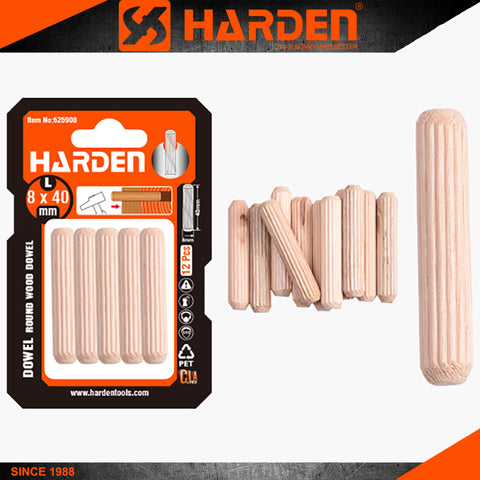 625908 12Pcs 8x40mm Round Wood Dowel Material: Wood Size: 8x40mm Quantity: 12pcs Packed by blister card