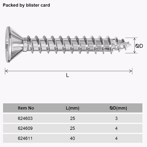 624603 60Pcs 3x25mm Countersunk Head Self-tapping Screw Set